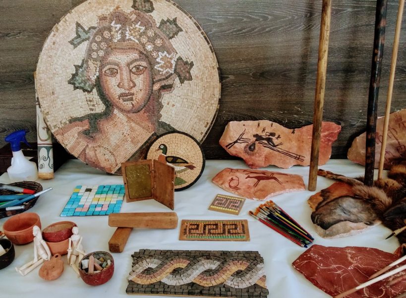 - El primero de ellos se realiza tras la visita y dura una hora y media aproximadamente. Los padres pueden estar presentes en el mismo, sobre todo en el caso de los más pequeños para echar una mano. Cada fin de semana se varía la temática, por lo que aconsejo visitar el calendario para elegir el que más os interese. En nuestro caso hicimos uno de mosaicos romanos. Adaptado a todo tipo de edades. Los más pequeños como Piticli trabajaron con teselas más grandes y un diseño fácil. Los más mayores hicieron uno más sofisticado. Todos quedaron encantados.