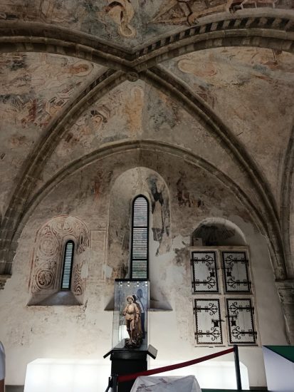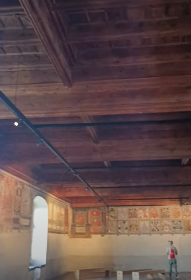 La gran sala ceremonial cuenta con una techumbre toda de madera, la gran chimenea y los ventanales con vistas al lago te harán estar de acuerdo con que fuese la estancia principal tanto en lo político como en lo social del castillo. Admira los restos de pintura mural medieval.