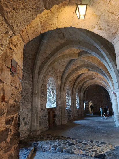 - Gótico temprano (siglos XIII–XIV): bóvedas apuntadas en mazmorras, mayor verticalidad.