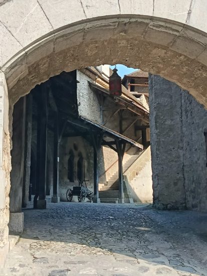 El castillo es prácticamente un manual vivo de arquitectura medieval alpina.