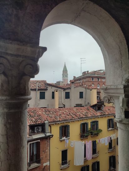 Subirla es parte de la experiencia: al llegar arriba, tienes una vista panorámica preciosa del barrio de San Marco, con las cúpulas de San Marcos y los tejados rojizos extendiéndose como un mar de ladrillo. Incluso con algo de niebla, el encanto de tener los tejados de Venecia y las gaviotas sobrevolando es sobrecogedor.