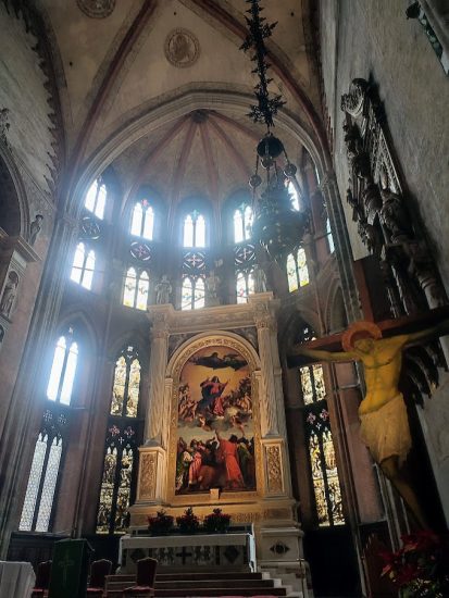 Esta basílica es de las más grandes de Venecia ( y eso es mucho decir en esta ciudad). Construida en ladrillo y de estilo gótico, no te dejes engañar por su aspecto exterior bastante simple. En su interior encontrarás obras de Bellini, Donatello, Tiziano y la tumba del célebre Claudio Monteverdi. Sus 17 altares monumentales te dejarán sin aliento, aprovecha y descansa en alguno de sus bancos contemplando la maravilla de la luz atravesando la oscuridad de la nave principal.