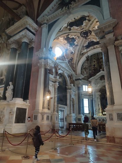 Construida como agradecimiento por el fin de la peste de 1630, es una de las postales más icónicas de Venecia. Desde fuera parece una corona de mármol flotando sobre el agua.